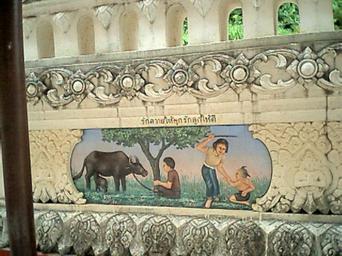| Keywords: 0010รักควาย.JPG รักควายให้ ูก รักลูกให้ตี รักวัวให้ ูกรักลูกให้ตี -- Illustrated Proverb Love ox tie it; love child beat it Phra That Phanom chedi Amphoe That Phanom Nakhon Phanom Province northeastern Thailand 2004-06-21 Pawyi Lee Public domain Reliefs in Thailand Wat Phra Tat Phanom Water buffaloes in art in Thailand Cows in art Proverbs in art Thai proverbs |