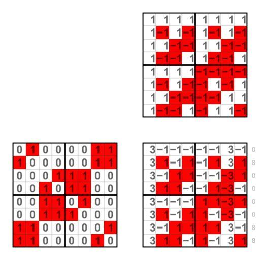 | Keywords: 0100 0011 Walsh spectrum.svg Walsh spectra of 3-ary Boolean functions like 0100 0011 The binary strings are multiplied with a Walsh matrix of order 8 The red squares in the background are additional information and show the product of the binary strings with a binary Walsh matrix own Lipedia Walsh spectrum of 3-ary Boolean functions |