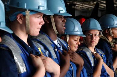 | Keywords: 011217-N-9769S-207 Ready for Working Party.jpg  en 011217-N-9769P-207 At sea aboard USS John C Stennis CVN 74 Dec 17 2001 -- A team of Sailors from USS John C Stennis prepare for an underway replenishment with USS Bridge AOE 10 Stennis and her battle group are supporting Operation Enduring Freedom U S Navy photo by Photographer's Mate 3rd Class Jayme Pastoric RELEASED 2001-12-17 011217-N-9769P-207 Navy http //www navy mil/view_image asp id 224 Photographer's Mate Third Class Jayme Pastoric United States Navy PD-USGov-Military-Navy Photographs of standing men Standing women December 2001 in the United States Blue helmets underway replenishment Aboard USS John C Stennis CVN-74 Photographs taken on 2001-12-17 Sailors at sea Military people in 2001 People of the United States in 2001 Operation Enduring Freedom in 2001 Group photographs of military people Women with hard hats Men with hard hats Military people on duty Women in the United States Navy Men and women at work African American sailors Female sailors 21st-century women of the United States Blue clothing female Blue clothing male Standing women in a boat |