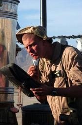 Keywords: 011230-N-2383B-509 U.S. Marine.jpg en 011230-N-2383B-509 KANDAHAR December 30 2001 -- At a forward operating base in Kandahar Afghanistan a U S Marine with the 26th Marine Expeditionary Unit Special Operations Capable Air Combat Element ACE touches up his chin of hair stubble as he maintains proper hygiene out in the field U S Marines are in Afghanistan operating in support of Operation Enduring Freedom U S Navy photo by Chief Photographer's Mate Johnny Bivera Fleet Combat Camera Atlantic RELEASED 2001-12-30 011230-N-2383B-509 Navy http //www navy mil/view_image asp id 604 U S Navy photo by Chief Photographer's Mate Johnny Bivera Fleet Combat Camera Atlantic PD-USGov-Military-Navy United States Marine Corps in Kandahar Province Shaving War in Afghanistan in 2001 United States Marine Corps in the War in Afghanistan 2001-present 26th Marine Expeditionary Unit War in Afghanistan 2001-present related operations outside of Afghanistan December 2001 photographs Military people in 2001 People of the United States in 2001 December 2001 in Afghanistan 30 December Male soldiers Boonie hats Taken with Nikon D1H Desert Camouflage Uniform in 2001 |