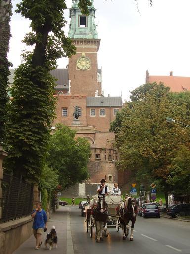 Keywords: 011KrakówWawel.JPG Kraków Poland Own 2007-07 Rj1979 Wawel defensive walls Wawel Clock Tower One-handed clocks Krakow Carriages in Kraków
