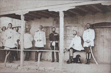 Keywords: 0170 Его Величество Государь Император Александр II, великий князь Николай Николаевич и Кароль I, князь Румынии, с офицерами штаба в.jpg Grand Prince Nikolai Nikolayevich and Karol I the Count of Romania with officers of the staff in Gorna Studena Го ной Студене 1877-10 Forgotten photos of Russo-Turkish War author other versions PD-old-70-1923 Russo-Turkish War 1877 1878