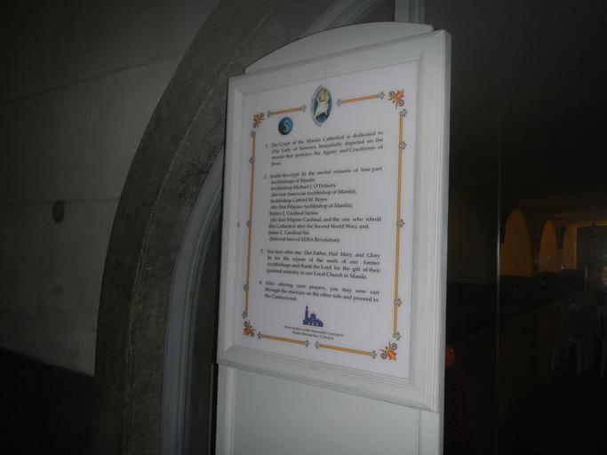 Keywords: 01804jfManila Cathedral Basilica Intramuros Manila Landmarksfvf 18.jpg Intramuros Landmarks include the Manila Cathedral Crypt of Our Lady of Sorrows - Tombs of Cardinals Michael J O'Doherty Gabriel M Reyes Rufino J Santos Jaime L Sin Manila Cathedral ; Plaza de Roma Intramuros King Charles IV of Spain monument Intramuros Ž along Genral Luna Real de Palacio Street corner A Soriano Jr Avenue formerly Aduana corner Arzobizpo Street; Intramuros Fire Station Bureau of Fire Protection Plaza de Roma 1824 bronze statue of Carlos IV of Spain 1886 Fountain; Main facade-Clock Tower-Belfry; Note Judge Florentino Floro the owner to repeat Donor Florentino Floro of all these photos hereby donate gratuitously freely and unconditionally all these photos to and for Wikimedia Commons exclusively for public use of the public domain and again without any condition whatsoever 2016-09-08 12 54 55 own Judgefloro other versions Crypt of Our Lady of Sorrows - Tombs of Cardinals Michael J O'Doherty Gabriel M Reyes Rufino J Santos Jaime L Sin Manila Cathedral |