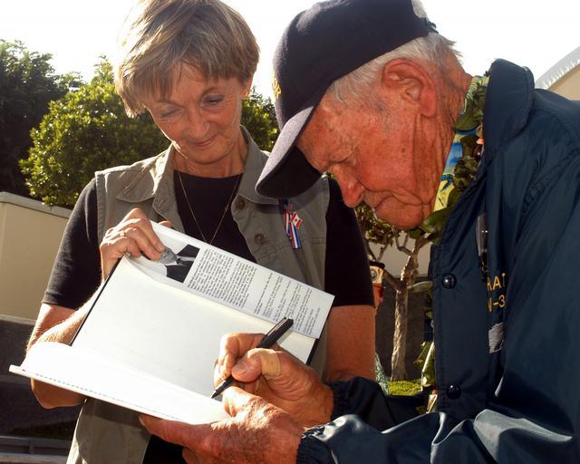 | Keywords: 12/7 127 medal of honor medalofhonor moh naval station pearl harbor navalstationpearlharbor people retiree veteran hawaii usa hawaii, ohau hawaiiohau 021207-N-2022S-003.07 December 2002 - Pearl Harbor HI //.Medal of Honor recipient, and Pearl Harbor survivor John W. Finn, signs the military history book of Mrs. Lawrena A. Julian during the 61st Commemoration ceremony of the December 7, 1941 attack on Pearl Harbor. John W. Finn is the last living recipient of the Medal of Honor for December 7, 1941..U.S. Navy Photo by Photographers Mate Third Class Kory A. Scott 021207-N-2022S-003.07 December 2002 - Pearl Harbor HI //.Medal of Honor recipient, and Pearl Harbor survivor John W. Finn, signs the military history book of Mrs. Lawrena A. Julian during the 61st Commemoration ceremony of the December 7, 1941 attack on Pearl Harbor. John W. Finn is the last living recipient of the Medal of Honor for December 7, 1941..U.S. Navy Photo by Photographers Mate Third Class Kory A. Scott 021207-N-2022S-003.07 December 2002 - Pearl Harbor HI //.Medal of Honor recipient, and Pearl Harbor survivor John W. Finn, signs the military history book of Mrs. Lawrena A. Julian during the 61st Commemoration ceremony of the December 7, 1941 attack on Pearl Harbor. John W. Finn is the last living recipient of the Medal of Honor for December 7, 1941..U.S. Navy Photo by Photographers Mate Third Class Kory A. Scott people usa hawaii 127 veteran moh retiree medalofhonor navalstationpearlharbor hawaiiohau |