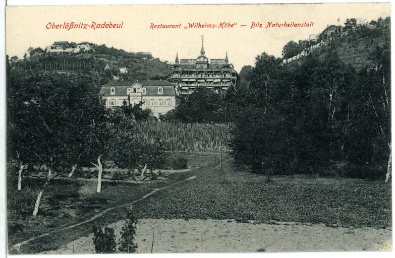 | Keywords: 02154-Radebeul-1901-Restaurant Wilhelms-Höhe, Bilz Naturheilanstalt-Brück & Sohn Kunstverlag.jpg Radebeul; Restaurant Wilhelms-Höhe Bilz Naturheilanstalt Brück Sohn 02154 yes 1901 own Brück Sohn Kunstverlag Meißen cc-zero Wilhelmshöhe Radebeul Schloss Lössnitz 1901 postcards of Landkreis Meißen 1901 postcards published by Brück Sohn Postcards of Oberlößnitz published by Brück Sohn Images from Brück Sohn Uploaded with VicuñaUploader Haus Albertsberg | ||||