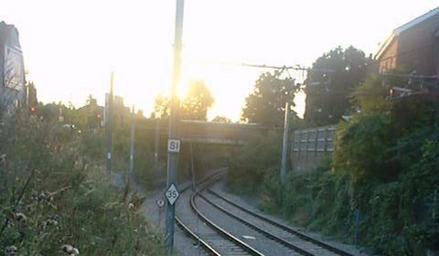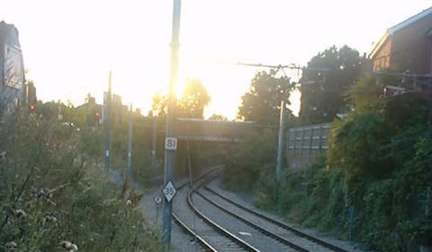 | Keywords: 028139 tramlink mitcham.jpg  gauntlet track on Tramlink in Mitcham London TQ 272 681 Mitcham railway station London Mitcham tram stop looking towards the bridge carrying London Road over the tram line An example of The upper picture is from The picture on the right is looking north from the bridge There has been a railway of some sort at this point since 1803 although not continuously the Surrey Iron Railway having been at a higher level than the present tramway In 1967 the wall on the right which dates from the construction of the Wimbledon Croydon Railway was in danger of collapse and was shored up initially with timber baulks later with massive concrete buttresses When Tramlink was constructed rather than go to the expense of rebuilding the wall the planners opted to use gauntlet track for this section own since 1803 user RHaworth thumb RHaworth Tramlink in the London Borough of Merton Tramlink tracks Gauntlet tracks Images by Roger W Haworth |
