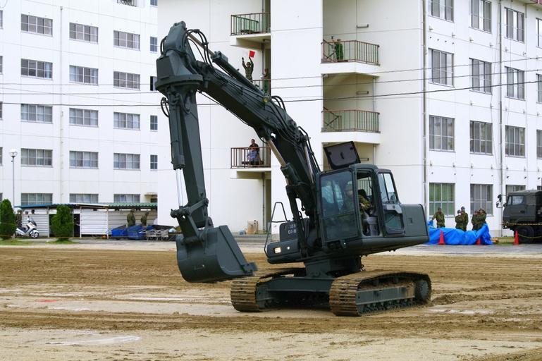Keywords: 掩体掘削機02.jpg ja 右側へ車体をローリングさせた様子 投稿 自身が撮影 Trans5885 2013-04-07 Military engineering vehicles of the JGSDF Excavators in Japan