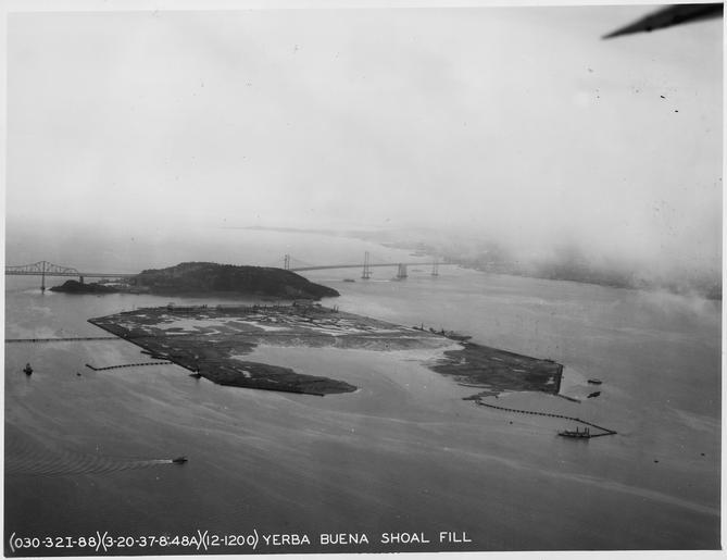 Keywords: (030-32I-88) (3-20-37-8-48A) (12-1200) Yerba Buena Shoal Fill - NARA - 296384.tif Scope and content This is an aerial view of the partially complete Yerba Buena Shoal project Yerba Buena Island and the San Francisco Bay Bridge can be seen in the background The pipeline dredge Sacramento can be seen at work in the foreground General notes 296384 Local identifier War Department Office of the Chief of Engineers San Francisco District 1866 - 09/18/1947 NARA's Pacific Region San Bruno NRHAS 1000 Commodore Drive San Bruno CA 94066-2350 1937-03-20 Record group Record Group 77 Records of the Office of the Chief of Engineers 1789 - 1999 Record group ARC 406 Photographs and Negatives Relating to Harbor Projects compiled 1913 - 1938 Series ARC 296374 File unit File unit ARC Variant control numbers NAIL Control Number NRHS-77-YBSPHO-10 030 32I 88 yes Other versions <gallery> File 030-32I-88 _ 3-20-37-8-48A _ 12-1200 _Yerba_Buena_Shoal_Fill_-_NARA_-_296384 tif tif File 030-32I-88 _ 3-20-37-8-48A _ 12-1200 _Yerba_Buena_Shoal_Fill_-_NARA_-_296384 jpg jpg </gallery> NARA-cooperation PD-USGov Treasure Island California Land reclamation in the United States Yerba Buena Island NARA TIF images with categorized JPGs |