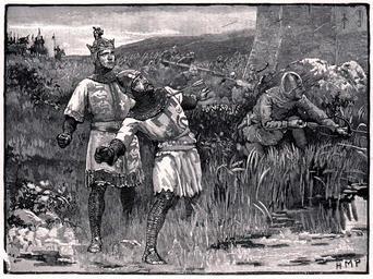 Keywords: 031-crusadersattacking-castle-1600x1200.jpg Crusaders attacking a castle Johnson Helen Kendrik Ed World ™s Best Music ' 1900 http //www fromoldbooks org/WorldsBestMusic/pages/031-crusadersattacking-castle/ 1900 Johnson Helen Kendrik Ed public domain hence royalty-free stock image for all purposes and no usage credit required Crusaders Mediaeval US Medieval soldiers attack a castle One of them has just been struck by an arrow The man behind him wears a crown and his hauberk bears the three lions of England To their left another soldier wearing a helmet and chain mail draws a bow preparing to shoot an arrow In the distance are horsemen with spears held upright PD-old Crusaders Medieval warriors Attacking a castle