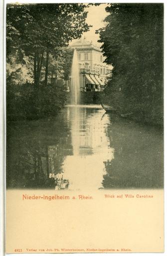 | Keywords: 04811-Nieder Ingelheim-1903-Villa Carolina-Brück & Sohn Kunstverlag.jpg Nieder Ingelheim; Villa Carolina Caroline von Bernus Tochter des Frankfurter Senators Freiherr Franz von Bernus heiratete am 10 Oktober 1859 den Juristen Dr Wilhelm von Erlanger Das Wohnhaus wurde 1938 abgerissen der dazugehörige Park vergrößert und verschönert Brück Sohn 04811 yes 1903 own Brück Sohn Kunstverlag Meißen cc-zero Villas in Landkreis Mainz-Bingen Ingelheim Fountains in Rhineland-Palatinate Ponds in Rhineland-Palatinate Ingelheim am Rhein 1903 postcards of Rhineland-Palatinate 1903 postcards published by Brück Sohn Postcards of Ingelheim am Rhein published by Brück Sohn Images from Brück Sohn Uploaded with VicuñaUploader |