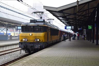 | Keywords: cnl citynightline nachttrein overnight train nachtzug amersfoort omleiding amsterdam münchen munich zürich db locomotief 1700 1750 rijtuigen voitures coaches wagen 418 vehicle locomotive railroad road Tijdens diverse weekenden waarin omvangrijke werkzaamheden plaatsvonden te Utrecht, had ProRail besloten om de ICE's en de CNL via Amersfoort om te leiden. Hierdoor had Amersfoort een aantal weekend een spilfunctie in het treinverkeer richting Duitsland. Alle ICE's en de CNL worden dan vanaf Arnhem via Zutphen, Deventer en Apeldoorn richting Amersfoort omgeleid, waarbij het merendeel van deze treinen ook nog eens daar eindigde. Alleen enkele vroege en late ICE's en de CityNightLine reden door naar Amsterdam Centraal. Zo ook op 4 juni, de een-na-laatste keer dat deze omleidingen plaatsvonden (het laatste weekend was 18-19 juni). Rond 11 uur 's ochtends komt de CityNightLine mooi op tijd Amersfoort binnenrijden. De rijtuigen uit Zürich en Basel konden door een te hoog opgelopen vertraging niet meer op tijd aankomen, waardoor alleen maar het treindeel uit München overbleef. Om deze reden bestond de trein slechts uit zes in plaats van de gebruikelijke 15 rijtuigen. Hierdoor was de trein wel mooi bij de stationskap te fotograferen. Zoals op de foto te zien is, zijn een aantal reizigers met hun bagage net uitgestapt en kan het treinpersoneel ook even de benen strekken. Na een paar minuten trok de 1750 onder luid gebrul op richting Amsterdam Centraal, waar de rest van de reizigers kon uitstappen. Tijdens diverse weekenden waarin omvangrijke werkzaamheden plaatsvonden te Utrecht, had ProRail besloten om de ICE's en de CNL via Amersfoort om te leiden. Hierdoor had Amersfoort een aantal weekend een spilfunctie in het treinverkeer richting Duitsland. Alle ICE's en de CNL worden dan vanaf Arnhem via Zutphen, Deventer en Apeldoorn richting Amersfoort omgeleid, waarbij het merendeel van deze treinen ook nog eens daar eindigde. Alleen enkele vroege en late ICE's en de CityNightLine reden door naar Amsterdam Centraal. Zo ook op 4 juni, de een-na-laatste keer dat deze omleidingen plaatsvonden (het laatste weekend was 18-19 juni). Rond 11 uur 's ochtends komt de CityNightLine mooi op tijd Amersfoort binnenrijden. De rijtuigen uit Zürich en Basel konden door een te hoog opgelopen vertraging niet meer op tijd aankomen, waardoor alleen maar het treindeel uit München overbleef. Om deze reden bestond de trein slechts uit zes in plaats van de gebruikelijke 15 rijtuigen. Hierdoor was de trein wel mooi bij de stationskap te fotograferen. Zoals op de foto te zien is, zijn een aantal reizigers met hun bagage net uitgestapt en kan het treinpersoneel ook even de benen strekken. Na een paar minuten trok de 1750 onder luid gebrul op richting Amsterdam Centraal, waar de rest van de reizigers kon uitstappen. |