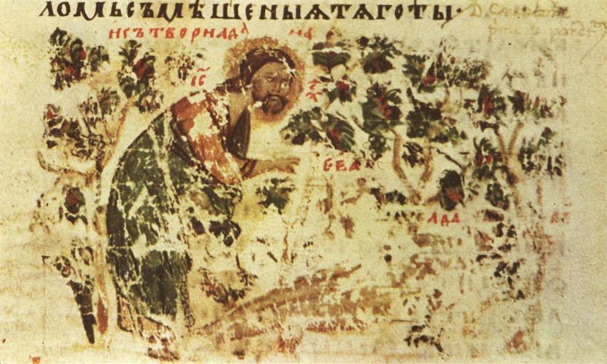 MAKE A MEME View Large Image 04-manasses-chronicle.jpg  иниатю а 4 от  анасиевата летопис 14 век Създаването на Ева от  еб ото Адамово Miniature 4 from the Constantine Manasses Chronicle 14 century ...