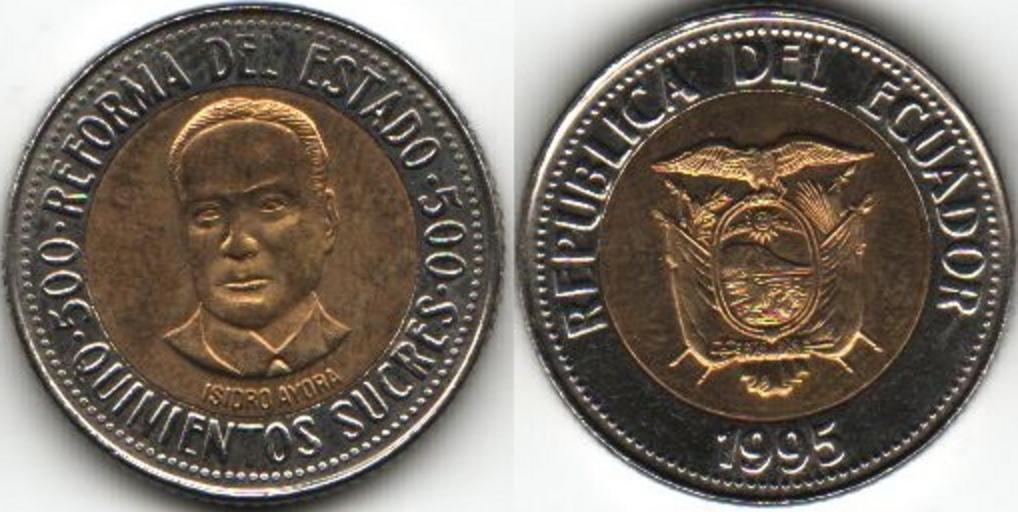 Keywords: 0500+Sucres+Ecuador+1995.jpg Ecuadorian 500 Sucres coin own Scan 9 7 2006 Scanned by Ma_xyz Public Domain Coins of Ecuador