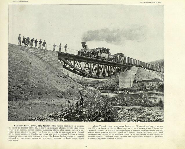 | Keywords: 053 Железный мост через реку Ушайку.jpg ru Альбом «Великий путь Виды Сиби и и Великой сиби ской железной до оги» 1899 en «Great Path - Views of Siberia and Great Siberian Railway» book 1899 1899 flickr photos by I R Tomaskiewicz comments by V A I-v Custom license marker 2014 04 08 PD-RusEmpire PD-old Great Path - Views of Siberia and Great Siberian Railway Uploaded with UploadWizard Bridges over Ushaika Rail transport in Tomsk Bridges in Tomsk Replaced bridges in Russia 1890s bridges in Russia Railway bridges in Russia Iron truss bridges in Russia |
