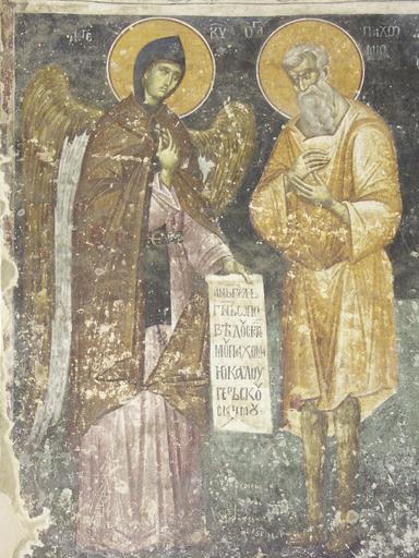 | Keywords: 06 Нагоричино прп Пахомий и анг з с.JPG mk Ф ески во Ц квата Св Ѓо ѓи во Ста о аго ичане кумановско en Frescos in St George Church in Staro Nagoričane Macedonia ru акедония ф ески 12-14 вв Ста о аго ично http //sankire narod ru/StarNagorod html Ста о аго ично CE 1317 Painters Michael and Ephtichius PD-Macedonia PD-Art-100 Paintings in St George's Church Staro Nagoričane | ||||