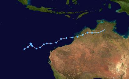 | Keywords: 06U 2010 track.png Track map of Tropical Low 06U designated 98S INVEST by NRL of the 2010 “11 Australian region cyclone season The points show the location of the storm at 6-hour intervals The colour represents the storm's maximum sustained wind speeds as classified in the Saffir-Simpson Hurricane Scale see below and the shape of the data points represent the nature of the storm according to the legend below User Nilfanion/Tc/T Created using Wikipedia WikiProject Tropical cyclones/Tracks The background image is from NASA Tracking data is from NRLhttp //www webcitation org/5vRbkHkcd 2011-01-02 Keith Edkins 2010-11 Australian region cyclone season track maps |