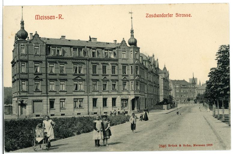 | Keywords: 07846-Meißen-1906-Zaschendorfer Straße mit Kindern-Brück & Sohn Kunstverlag.jpg Meißen; Zaschendorfer Straße mit Kindern Brück Sohn 07846 yes 1906 own Brück Sohn Kunstverlag Meißen cc-zero Buildings in Meißen Shops in Saxony Baby carriers 1906 postcards of Meißen 1906 postcards published by Brück Sohn Postcards of Meißen published by Brück Sohn Images from Brück Sohn Uploaded with VicuñaUploader | ||||