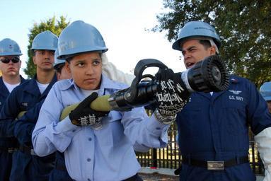 Keywords: proper hose handling drill properhosehandlingdrill pcu makin island (lhd 8) pcumakinislandlhd8 keesler air force base keeslerairforcebase miss. miss united states unitedstates groupshot people outdoor 090310-N-9493W-302 KEESLER AIR FORCE BASE, Miss. (March 10, 2009) Aviation Boatswain’s Mate (Handling) Airman Chelsea Vaughan, from Spring, Texas, assigned to the Pre-Commissioning Unit (PCU) Makin Island (LHD 8), gets direction from Aviation Boatswain’s Mate (Handling) 2nd Class Eric Ruiz on proper hose-handling techniques during an aircraft fire fighting drill aboard Keesler’s Building and Aircraft Fire Trainer. The aviation training team aboard Makin Island has been conducting various weekly training as a part of ongoing preparations for the ship’s upcoming aviation certification. (U. S. Navy photo by Mass Communication Specialist 2nd Class Justin L. Webb/Released) 090310-N-9493W-302 KEESLER AIR FORCE BASE, Miss. (March 10, 2009) Aviation Boatswain’s Mate (Handling) Airman Chelsea Vaughan, from Spring, Texas, assigned to the Pre-Commissioning Unit (PCU) Makin Island (LHD 8), gets direction from Aviation Boatswain’s Mate (Handling) 2nd Class Eric Ruiz on proper hose-handling techniques during an aircraft fire fighting drill aboard Keesler’s Building and Aircraft Fire Trainer. The aviation training team aboard Makin Island has been conducting various weekly training as a part of ongoing preparations for the ship’s upcoming aviation certification. (U. S. Navy photo by Mass Communication Specialist 2nd Class Justin L. Webb/Released) |