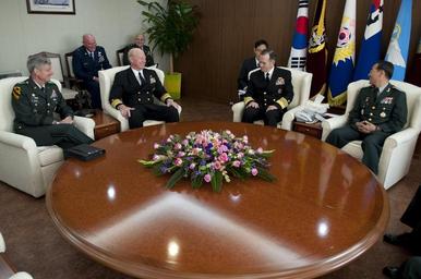 Keywords: 091021-N-0696M-065 (4034793708).jpg From left U S Army Gen Walter 'skip Sharp commander of U S Forces Korea; Navy Adm Robert F Willard commander of U S Pacific Command; Chairman of the Joint Chiefs of Staff Navy Adm Mike Mullen and Chairman of the Joint Chiefs of Staff of the Republic of Korea Armed Forces Gen Lee Sang-Eui meet in Seoul South Korea Oct 21 2009 Mullen and Willard are visiting Seoul for the annual Military Committee Meetings between South Korea and the United States DoD photo by Mass Communication Specialist 1st Class Chad J McNeeley U S Navy/Released https //www flickr com/photos/39955793 N07/4034793708/ 091021-N-0696M-065 2009-10-21 09 30 https //www flickr com/people/39955793 N07 U S Department of Defense Current Photos PD-USGov-Military-Navy U S Department of Defense Current Photos https //flickr com/photos/39955793 N07/4034793708 2016-11-27 20 14 37 United States Government Work Robert Willard Michael G Mullen in 2009 Change of command Gates Seoul Pacific Ocean United States Pacific Command United States Navy Files from Flickr with bad file names Files uploaded by Reguyla |