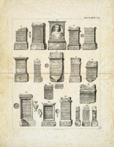 | Keywords: ^^091,Autels votifs^^093, (Atlas des Monuments mythologiques t. II, pl. 1. 2.) - Fonds Ancely - B315556101 A DUMEGE 035.jpg Texte incomplet des dernières pages La plupart des lithographies ont été tirées par les ateliers de Raynaud frères d'après A Du Mège Quelques unes ont été dessinées et lithographiées par Charles Gall Bonnet E Binet Durand M Pomier P Lacour G Chariol Les planches sont numérotées mais plusieurs manquent sur les 49 annoncées pl 1 6 13 18 21 22 23 24 25 26 27 28 30 31 32 33 38 40 il semblent que ces planches n'aient jamais été publiées voir note p 9 du texte - Les 4 dernières planches sont extraites du tome II de l'Atlas de l'Archéologie Pyrénéenne Monuments mythologiques pl 1 à 6 Pièces jointes couvertures papier de différentes livraisons Ancely René 1876 - 1966 Possesseur fre public domain domaine public B315556101_A_DUMEGE_1_035 jpg image/jpeg 1 pl lithogr ; 64 cm Gall Charles 18 -18 Illustrateur Bonnet Illustrateur Durand Illustrateur Lacour P Illustrateur Chariol G Illustrateur Binet E Illustrateur http //numerique bibliotheque toulouse fr/collect/general/index/assoc//ark /74899/B315556101_A_DUMEGE_035 dir/B315556101_A_DUMEGE_1_035 jpg Bibliothèque municipale de Toulouse A-DUMEGE 27 Creator Alexandre Du Mège http //catalogues toulouse fr/web2/tramp2 exe/do_keyword_search/log_in setting_key BMT1 servers 1home query p000390 Carte du Royaume et du duché de Septimanie n° 2 Abbaye de la Grasse - Tolosa Vignette tirée du second livre de l'histoire manuscrite de la ville de Tolosa Archives de l'hotel de Ville 16e siècle - Dame Carcas Figure en pierre placée sur un Cippe en dehors de la Porte Narbonnaise 16e siècle n° 3 Ruines du Château de Beaucaire - Carcassonne murs anciens de la Cité t I n° 4 Fragment présumé du tombeau de Simon de Montfort - Bataille de Muret - Miracle de Fangeaux i e Fanjeaux t I n° 5 Portail de Maguelonne sic t I n° 7 Abbaye de Gellone ou de St Guilhem du désert t I n° 8 Cathédrale Ste Cécile d'Albi Grand escalier t I n° 9 Cathédrale Ste Cécile d'Albi Vue générale intérieure t I n° 10 Fresque de l'église Ste Cécile d'Alby Le cardinal Joannes Jofredus et ses deux frères - Croix d'Armagnac t I n° 11 Détail d'une des portes latérales de St Gilles - Façade de St Gilles t I n° 12 Croquis de l'une des mosaèiques découvertes par MM J Soulages et Escudier dans le lieu de Silva Agra Saint-Rustice à plus de vingt kilomètres de Toulouse t I n° 14 Partie des ruines de l'église St Etienne d'Agen - Ruines du Château de Nérac t I n° 15 Palais Tutèle d'après une gravure sur bois publiée à Bordeaux en 1565 t I n° 17 Monuments sépulchraux des Samatan descendants des premiers comtes de Comminges t I n° 19 Un des plus beaux vitraux de la cathédrale d'Auch dans la chapelle du Purgatoire t I t I n° 20 Voeu fait par le roi Charles VI dans la forêt de Bouconne Etant accompagné du duc de Touraine frère du roi du duc de Bourbon de Pierre de Navarre comte d'Evreux d'Henri de Bar de Philippe d'Artois comte d'Eu d'Olivier de Clisson connétable de France et d'Enguerrand sire de Couci D'après une étude de M Pomier t I n° 29 Entrée du Dauphin fils de Charles VII depuis Louis XI dans Toulouse en 1443 vignette calquée dans les archives de Toulouse t I n° 34 Entrée du Dauphin fils de François 1er dans Toulouse en 1533 calque d'une vignette des annales manuscrites de la ville t I n° 35 Entrée de la Reine de France femme de François 1er dans Toulouse en 1533 vignette calquée dans les archives de la ville t I n° 36 Entrée du roi Louis XIV dans Toulouse en 1659 calque d'une vignette conservée dans les archives de la ville t I n° 37 Rétablissement du Parlement à Toulouse en 1469 d'après la demande de Mr Lebrun Juge-Mage de cette ville t I n° 39 Bas-reliefs de l'obélisque de Port-Vendres La servitude abolie La marine relevée L'indépendance de l'Amérique La liberté du commerce t I n° 41 Cathédrale Saint Bertrand de Comminges boisieries du déambulatoire t I n° 46 Bas-reliefs du tombeau de St Fort dont Le pape Clément V office à l'église St Seurin en 1306 la seconde année de son pontificat ; Vue de la chapelle souterraine et du tombeau de St Fort à Bordeaux t I n° 47 Sceaux des comtes souverains de Toulouse Tripoli et Poitiers t I n° 48 Monuments sépulcraux des comtes souverains de Toulouse dont Chapelle sépulcrale des Comtes de Toulouse telle qu'elle existait en 1615 t I n° 49 Bas-relief de Sarcophage Atlas des Monuments mythologiques t II pl 3 4 Bas-reliefs de Sarcophage Atlas des Monuments mythologiques t II pl 5 Objets décorés Atlas des Monuments mythologiques t II pl 6 vignette http //numerique bibliotheque toulouse fr/collect/general/index/assoc//ark /74899/B315556101_A_DUMEGE_035 dir/B315556101_A_DUMEGE_1_035_thumb jpeg between 1858 1862 Autels votifs Atlas des Monuments mythologiques t II pl 1 2 B315556101_A_DUMEGE_035 lithography - print Steles Sculptures Alexandre Du Mège Marble |