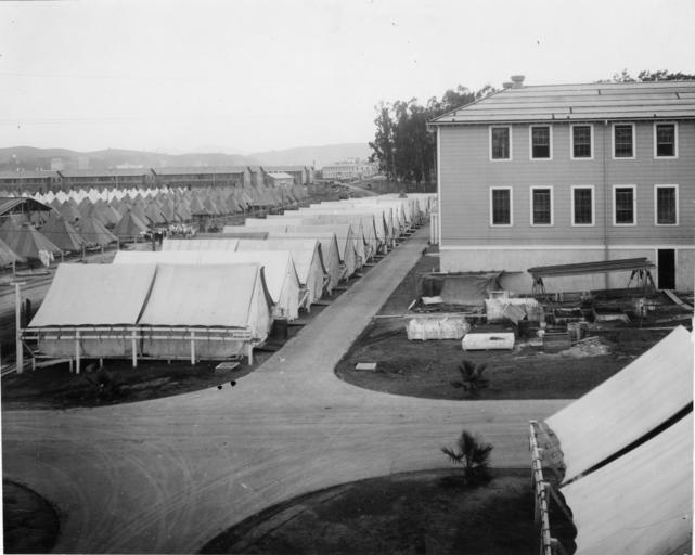 | Keywords: influenza spanish flu spanishflu world war 1 worldwar1 blackandwhite monochrome outdoor black and white U.S. Naval Hospital. A busy winter. General view of inner buildings and influenza emergency camps. [Building.][Hospitals, wards.][Scene.][Influenza.][World War 1.] Mare Island, California 12/10/1918. 09-5036-044 U.S. Naval Hospital. A busy winter. General view of inner buildings and influenza emergency camps. [Building.][Hospitals, wards.][Scene.][Influenza.][World War 1.] Mare Island, California 12/10/1918. 09-5036-044 |