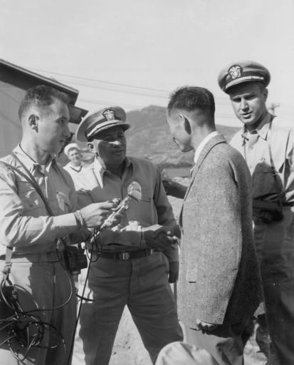 Keywords: blackandwhite people monochrome black and white 09-5085-20 Pusan, Korea. Repose helps Korean waifs. Professor Chou Moo Kim thanks commander J.P. Williams Commanding Officer of Repose. Lieutenant Junior Grade, H.N Kar of ComNavFc Radio T.V. and Lieutenant R.W. Bovcepid of Repose look on. . [Korean War.][Humanitarian assistance.][Indigenous peoples.][Hospital ships. Transport of sick and wounded.][Scene.] Repose (AH-16) Folder 2. 09/24/1951; USN 433413; 09-5085-20 Pusan, Korea. Repose helps Korean waifs. Professor Chou Moo Kim thanks commander J.P. Williams Commanding Officer of Repose. Lieutenant Junior Grade, H.N Kar of ComNavFc Radio T.V. and Lieutenant R.W. Bovcepid of Repose look on. . [Korean War.][Humanitarian assistance.][Indigenous peoples.][Hospital ships. Transport of sick and wounded.][Scene.] Repose (AH-16) Folder 2. 09/24/1951; USN 433413;