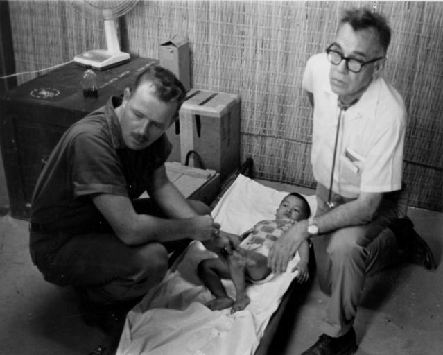 | Keywords: vietnam war vietnamwar blackandwhite monochrome black and white 09-7971-64 Hospital Corpsman Bill Wilson and Doctor Kramer of the Volunteer doctors for Vietnam discuss conditions of Vietnamese baby with mother (out of picture). The child's leg had a bent position after previous improper treatment. Child was sent to hospital in Tay Ninh for further treatment. [Vietnam War.] [Scene.] Vietnam - Treating Civilians. 05/29/1969; U.S.N. Photo by PH2 Kauls; U.S. Navy 09-7971-64 Hospital Corpsman Bill Wilson and Doctor Kramer of the Volunteer doctors for Vietnam discuss conditions of Vietnamese baby with mother (out of picture). The child's leg had a bent position after previous improper treatment. Child was sent to hospital in Tay Ninh for further treatment. [Vietnam War.] [Scene.] Vietnam - Treating Civilians. 05/29/1969; U.S.N. Photo by PH2 Kauls; U.S. Navy |