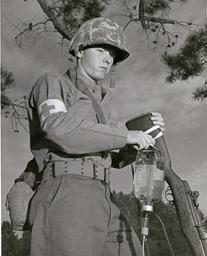 Keywords: hospital corps hospitalcorps training outdoor 09-8046-021 HQMC [Headquarters, Marine Corps], Quantico Virginia. Combat Corpsmen - Hospitalman James R. Bergmann, U.S. Navy, attaches a bottle of saline solution to a rifle for treatment of simulated patient during a casualty evacuation demonstration at the Marine Corps Schools, Quantico, Virginia. [Training.] [Scene.] Hospital Corps Training - Field Medical Service School and with the Marines. 10/26/1956; Marine Corps Photo A403725. 09-8046-021 HQMC [Headquarters, Marine Corps], Quantico Virginia. Combat Corpsmen - Hospitalman James R. Bergmann, U.S. Navy, attaches a bottle of saline solution to a rifle for treatment of simulated patient during a casualty evacuation demonstration at the Marine Corps Schools, Quantico, Virginia. [Training.] [Scene.] Hospital Corps Training - Field Medical Service School and with the Marines. 10/26/1956; Marine Corps Photo A403725. |