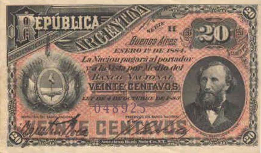 MAKE A MEME View Large Image Peso Moneda Nacional (Nacion) A 1891.jpg es 0 20 Peso Moneda Nacional en 20 Argentine centavo note own 1897; 2006-04-13 user Grimpi PD-old Banknotes of Argentina Moneda Nacional Banknotes with a face value of 20