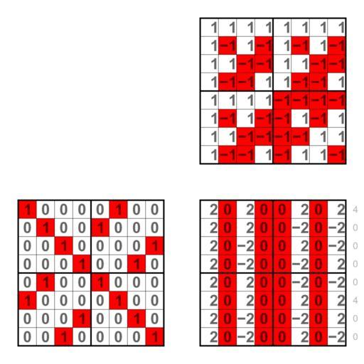 | Keywords: 1000 0100 Walsh spectrum.svg Walsh spectra of 3-ary Boolean functions like 1000 0100 The binary strings are multiplied with a Walsh matrix of order 8 The red squares in the background are additional information and show the product of the binary strings with a binary Walsh matrix own Lipedia Walsh spectrum of 3-ary Boolean functions |
