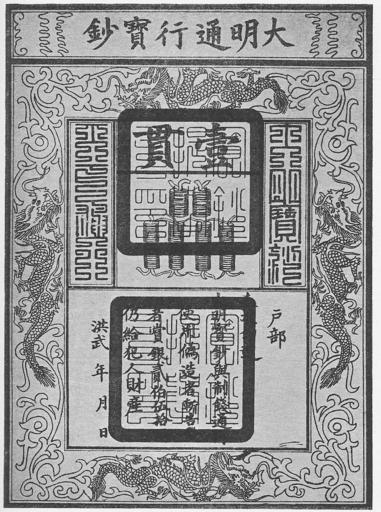 Keywords: 1000cashbanknote.jpg en A note for 1000 cash issued between 1368 and 1399 34x22 5 cms Printed in black on paper with red seal impressions for extra security By the time this note was issued seal impressions and printing once identical had become as clearly distinguished as our postmark and postage stamp are today Carter Thomas Carter The invention of printing in China Columbia UP 1925 from New York Museum of Numismatics Chris55 1368-1399 PD-old-100 Art history History of printing Chinese typography Historical banknotes of China |