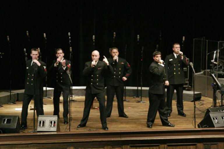 Keywords: navy band navyband navy military united states world's finest worldsfinest america's navy americasnavy global force for good globalforceforgood u.s. navy band usnavyband anchors aweigh anchorsaweigh people 100302-N-5843P-028 HUBER, GEORGIA (March 2, 2010) Men from the U.S. Navy Band's Sea Chanters Musical Theater group, from left to right, Musicians 1st Class William Edwards, Adam Tyler, Dustin Lucas, David Sigmon, Michael Belinkie and Michael Webb, perform "Leading Men Don't Dance" during a tour concert in the Willingham Chapel at Mercer University in Macon, Georgia. The Sea Chanters are on an 18 day national concert tour of the southeastern United States. Photo by MUCS Aaron Porter (released). 100302-N-5843P-028 HUBER, GEORGIA (March 2, 2010) Men from the U.S. Navy Band's Sea Chanters Musical Theater group, from left to right, Musicians 1st Class William Edwards, Adam Tyler, Dustin Lucas, David Sigmon, Michael Belinkie and Michael Webb, perform "Leading Men Don't Dance" during a tour concert in the Willingham Chapel at Mercer University in Macon, Georgia. The Sea Chanters are on an 18 day national concert tour of the southeastern United States. Photo by MUCS Aaron Porter (released). |