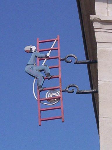 Keywords: 100 1023.jpg Hautvillers Marne France enseigne en fer forgé des pompiers 2006-07-10 own assumed Sand~commonswiki Shop signs in Hautvillers Wrought iron in France