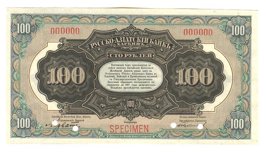 Keywords: 100 рублей Русско-Азиатский банк ABNC rev.jpg en 100 убль Русско-Азиатский банк ABNC rev jpg own Dvergar Banknotes of Russian-Asian Bank Banknotes with a face value of 100