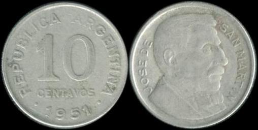 Keywords: 10 centavos - Peso Moneda Nacional - Argentina - 1951.png es Moneda de diez centavos de 1951 Argentine 10 centavos 1/100 of a peso Argentine coin Argentine Central Bank photograph by Turkmenistan 1951 Coin PD-AR-Anonymous <br/>Photograph Coins of Argentina 1951 coins |