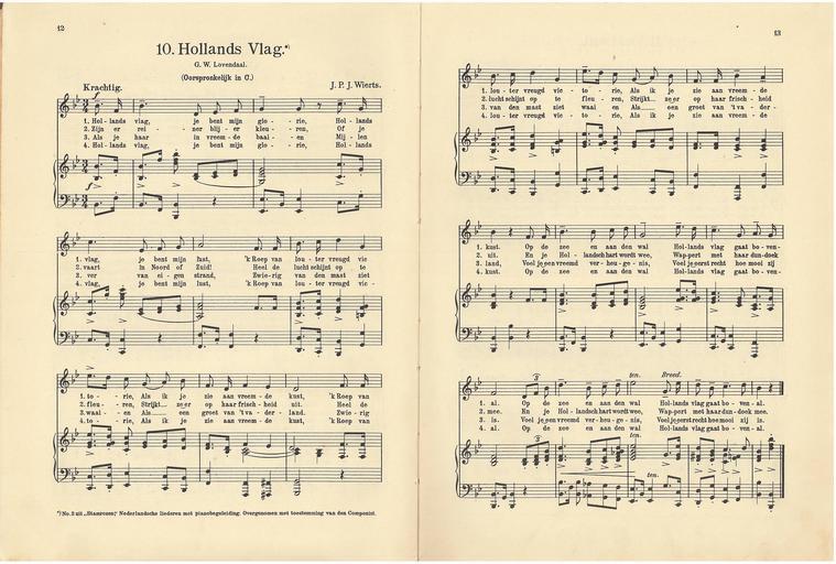 Keywords: 10 Hollands Vlag, pagina 12 & 13.jpg Kun je nog zingen zing dan mee Muziek en teksten origineel gepubliceerd voor 1900 own 1915 author PD-old Kun je nog zingen zing dan mee