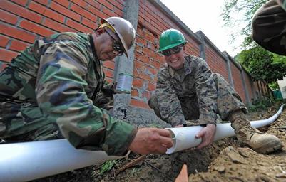 | Keywords: 110105-N-7589W-087 (5330781290).jpg U S Navy Utilitiesman 1st Class Carlos Sanchez left assigned to Naval Mobile Construction Battalion 28 Detail Bravo applies concrete sealant to a sewage pipe while Marine Corps Lance Cpl Stephen Mcdonaldhale assigned to 2nd Marine Logistics Group holds it steady at Escuela Eloy Alfaro School in Manta Ecuador Jan 5 2011 U S Sailors Marines and Ecuadorian naval infantrymen partnered at the school for week-long subject matter expert exchange during Southern Partnership Station 2011 an annual deployment of U S ships to the U S Southern Command's area of responsibility in the Caribbean and Latin America involving information sharing with navies coast guards and civilian services throughout the region DoD photo by Mass Communication Specialist 1st Class Jeffery Tilghman Williams U S Navy/Released https //www flickr com/photos/39955793 N07/5330781290/ 110105-N-7589W-087 2011-01-05 18 41 https //www flickr com/people/39955793 N07 U S Department of Defense Current Photos PD-USGov U S Department of Defense Current Photos https //flickr com/photos/39955793 N07/5330781290 2016-09-03 15 53 04 United States Government Work Manta Ecuador Southern Partnership Station 2011 Water pipes |