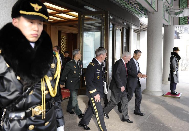 Keywords: 110114-F-6655M-024 (5355005338).jpg U S Secretary of Defense Robert M Gates walks with South Korean National Defense Minister Kim Kwan-jin and U S Forces Korea commander Army Gen Walter Sharp after a meeting with South Korean President Lee Myung-bak at the Blue House in Seoul South Korea Jan 14 2011 Gates was meeting with President Lee Myung-bak and Defense MInister Kim Kwan-jin to discuss U S and Korean defense issues DoD photo by Master Sgt Jerry Morrison U S Air Force/Released https //www flickr com/photos/39955793 N07/5355005338/ 110114-F-6655M-024 2011-01-14 01 30 https //www flickr com/people/39955793 N07 U S Department of Defense Current Photos PD-USGov U S Department of Defense Current Photos https //flickr com/photos/39955793 N07/5355005338 2016-09-03 15 31 31 United States Government Work Robert Gates in 2011 Kim Kwan-jin Walter L Sharp Cheongwadae |