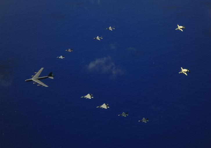 | Keywords: 110221-F-HA938-671.JPG (5473399105).jpg A U S Air Force B-52 Stratofortress aircraft from the 20th Expeditionary Bomb Squadron leads a formations of two F-16 Fighting Falcon aircraft assigned to the 18th Aggressor Squadron an F-16CJ Fighting Falcon from Misawa Japan an F-15J Eagle from Chitose Japan two Japanese Air Self-Defense Force F-2 attack fighters from the 6th Tactical Fighter Squadron two U S Navy EA-6B Prowler aircraft from the Electronic Attack Squadron an U S Navy E-2C Hawkeye and a Japanese E-2C Hawkeye aircraft on a flight over Guam during exercise Cope North Feb 21 2011 The U S Air Force and Japanese Air Self-Defense Force conduct Cope North annually at Andersen Air Force Base Guam to increase combat readiness and interoperability concentrating on coordination and evaluation of air tactics techniques and procedures U S Air Force photo by Staff Sgt Angelita M Lawrence/Released https //www flickr com/photos/39955793 N07/5473399105/ 110221-F-HA938-671 JPG 2011-02-21 01 13 https //www flickr com/people/39955793 N07 U S Department of Defense Current Photos PD-USGov U S Department of Defense Current Photos https //flickr com/photos/39955793 N07/5473399105 2016-09-03 15 11 08 United States Government Work 1st Combat Camera Squadron Andersen Air Force Base Cope North |