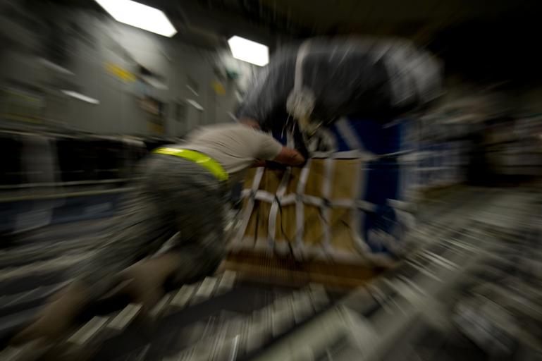 Keywords: 110305-F-DT527-052 (5510071646).jpg A U S Airman with the 8th Expeditionary Air Mobility Squadron loads cargo onto a C-17 Globemaster III aircraft for an air delivery mission to Afghanistan March 2 2011 The cargo consisting of fuel and other supplies was airdropped to a remote forward operating base in Afghanistan DoD photo by Master Sgt Adrian Cadiz U S Air Force/Released https //www flickr com/photos/39955793 N07/5510071646/ 110305-F-DT527-052 2011-03-05 01 27 https //www flickr com/people/39955793 N07 U S Department of Defense Current Photos PD-USGov U S Department of Defense Current Photos https //flickr com/photos/39955793 N07/5510071646 2016-09-03 15 12 23 United States Government Work 1st Combat Camera Squadron McChord Air Force Base Operation Enduring Freedom Boeing C-17 Globemaster III Cádiz United States Department of Defense |