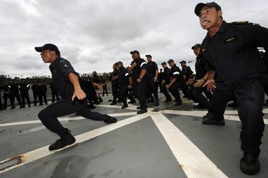 | Keywords: 110507-N-YM863- (5703771775).jpg 110507-N-YM863-044 ESPIRITU SANTO Vanuatu May 7 2011 “- New Zealand Sailors perform the Haka in honor of Destroyer Squadron 23 DESRON 23 aboard HMNZS Canterbury L-421 as the DESRON prepares to move the Destroyer Squadron 23 pennant from the Canterbury back to The amphibious transport dock ship USS Cleveland LPD 7 in the port of Espiritu Santo Vanuatu where during Pacific Partnership 2011 Pacific Partnership is a five-month humanitarian assistance initiative that completed its mission in Tonga is in Vanuatu and will visit Papua New Guinea Timor Leste and the Federated States of Micronesia U S Navy photo by Mass Communication Specialist 1st Class Eli J Medellin https //www flickr com/photos/39955793 N07/5703771775/ 110507-N-YM863- 2011-05-07 12 57 https //www flickr com/people/39955793 N07 U S Department of Defense Current Photos PD-USGov U S Department of Defense Current Photos https //flickr com/photos/39955793 N07/5703771775 2016-09-03 14 34 12 United States Government Work United States Department of Defense |