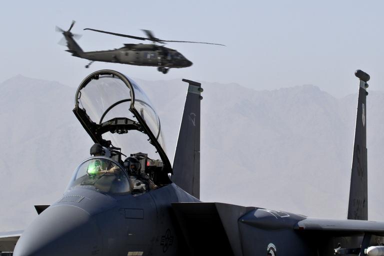 | Keywords: u.s. air force usairforce u.s. army usarmy rc east rceast rce oef operation enduring freedom operationenduringfreedom afghanistan bagram baf usaf air force airforce cas close air support closeairsupport military photo f-15e f15e strike eagle strikeeagle airman airmen maintenance army 335th fighter squadron fightersquadron 335th fighter squadron 335thfightersquadron bagram air field bagramairfield strike eagle fighter squadron operation enduring freedom f-15 f15 afterburner take off airplane aircraft combat close air support aviation conflict pilot pilots weapons bombs creative commons royalty free public domain photograph digital matt hecht getty reuters ap U.S. Air Force F-15E Strike Eagles from the 335th Expeditionary Fighter Squadron prep for close air support (CAS) missions at Bagram Air Field, Afghanistan on Oct. 27, 2011. Strike Eagles are all-weather multirole fighters that provide CAS for coalition troops. (U.S. Air National Guard photo by Tech. Sgt. Matt Hecht/Released) U.S. Air Force F-15E Strike Eagles from the 335th Expeditionary Fighter Squadron prep for close air support (CAS) missions at Bagram Air Field, Afghanistan on Oct. 27, 2011. Strike Eagles are all-weather multirole fighters that provide CAS for coalition troops. (U.S. Air National Guard photo by Tech. Sgt. Matt Hecht/Released) |