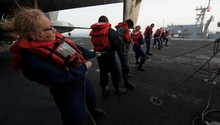 Keywords: 111212-N-OY799-208 (6517204177).jpg U S Sailors heave a phone and distance line on the flight deck during a replenishment at sea aboard aircraft carrier USS John C Stennis CVN 74 Dec 12 2011 in the Persian Gulf John C Stennis deployed to the U S 5th Fleet area of responsibility to conduct maritime security operations and support missions as part of operations Enduring Freedom and New Dawn DoD photo by Mass Communication Specialist 3rd Class Kenneth Abbate U S Navy/Released https //www flickr com/photos/39955793 N07/6517204177/ 111212-N-OY799-208 2011-12-12 16 00 https //www flickr com/people/39955793 N07 U S Department of Defense Current Photos PD-USGov U S Department of Defense Current Photos https //flickr com/photos/39955793 N07/6517204177 2016-09-03 12 51 54 United States Government Work Persian Gulf United States Department of Defense |