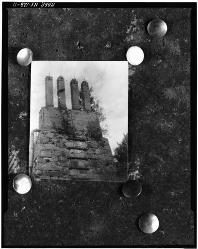 | Keywords: 11. Photocopied June 1978. HOT BLAST STOVE ON 'NEW' FURNACE. NOTE DOWNCOMER ON LEFT AND DAMPERS ON CHIMNEYS. CA. 1906. - LOC - hhh.ny0915.photos.116616p.jpg en 11 Photocopied June 1978 HOT BLAST STOVE ON 'NEW' FURNACE NOTE DOWNCOMER ON LEFT AND DAMPERS ON CHIMNEYS CA 1906 SOURCE MACINTYRE DEVELOPMENT NL INDUSTRIES TAHAWUS N Y - Adirondack Iron Steel Company New Furnace Hudson River Tahawus Essex County NY LOC-image hhh ny0915/photos 116616p Unknown employee of the United States government http //www loc gov/rr/print/res/114_habs html Historic American Buildings Survey/Historic American Engineering Record/Historic American Landscape Survey Collection Rights and Restrictions Information HABS-source PD-USGov Essex County New York Buildings in Essex County New York |