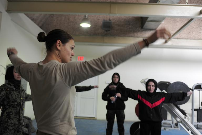 Keywords: 120118-F-WU210-015 (6749952633).jpg U S Air Force Capt Vanessa Vanden Bout left a support squadron adviser with the 439th Air Expeditionary Advisory Squadron performs warm-up exercises with Afghan National Army Air Force ANAAF members during a workout session at Kabul International Airport Kabul Afghanistan Jan 18 2012 Vanden Bout initiated the creation of a physical fitness class for women in the ANAAF with a focus on learning how to work out properly and safely with a goal of educating them about the benefits of a daily workout regimen U S Air Force photo by Staff Sgt Nadine Barclay/Released https //www flickr com/photos/39955793 N07/6749952633/ 120118-F-WU210-015 2008-12-22 20 57 https //www flickr com/people/39955793 N07 U S Department of Defense Current Photos PD-USGov U S Department of Defense Current Photos https //flickr com/photos/39955793 N07/6749952633 2016-09-03 12 32 35 United States Government Work Kabul United States Department of Defense |