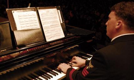 | Keywords: toledo concert band concertband navy national tour navynationaltour ohio music piano indoor stringed instrument piano keyboard electric organ keyboard instrument 120309-N-AB816-001 TOLEDO, OHIO (March 9, 2012) Musician 1st Class Daryl Partin, pianist with the U.S. Navy Concert Band, performs "Slalom," by Carter Pann during the National Tour concert at the Art Museum Peristyle Theater in Toledo, OH. This was the band's fourth day of a 25 day National Spring Tour of the Midwest. (U.S. Navy Photo by MU1 Shana Catandella/Released) 120309-N-AB816-001 TOLEDO, OHIO (March 9, 2012) Musician 1st Class Daryl Partin, pianist with the U.S. Navy Concert Band, performs "Slalom," by Carter Pann during the National Tour concert at the Art Museum Peristyle Theater in Toledo, OH. This was the band's fourth day of a 25 day National Spring Tour of the Midwest. (U.S. Navy Photo by MU1 Shana Catandella/Released) |