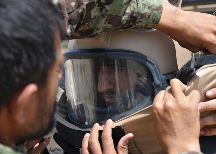 | Keywords: 120527-N-VN372-005 (7306676480).jpg  120527-N-VN372-005 KABUL “ May 27 2012 Afghan Army Explosive Ordnance Disposal Student Sgt Zahidullah Khairkhwa is dressed in a bomb suit by fellow classmate 1st Lt Mohammed Naquib Sherzad during a training exercise at the Kabul Military Training Center May 27 Afghan EOD students demonstrated their skills during a graded practical exercise in which they were tasked to render safe a command wire improvised explosive device while ensuring maximum safety and minimum damage to property NATO Training Mission-Afghanistan is a coalition of 38 troop-contributing nations charged with assisting the Government of the Islamic Republic of Afghanistan in generating a capable and sustainable Afghan National Security Force ready to take lead of their country's security by 2014 For more information about NTM-A visit http //www ntm-a com www ntm-a com U S Navy photo by Mass Communications Specialist 1st Class SW/AW Chris Fahey NATO Training Mission “ Afghanistan http //www flickr com/photos/ntm-a_cstc-a/7306676480/ 120527-N-VN372-005 2012-05-26 21 56 http //www flickr com/people/44825691 N08 NATO Training Mission-Afghanistan U S Navy photo PD-USGov-Military-Navy File Upload Bot Magnus Manske 2013-07-13 Bomb suits Kabul Military Training Center NATO Training Mission - Afghanistan Files from NATO Training Mission-Afghanistan Flickr stream Afghanistan photos from Flickr check needed  |