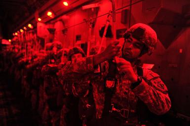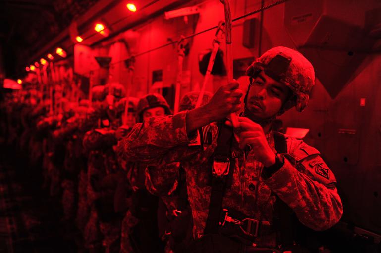 Keywords: 120608-F-RM405-284 (7190167183).jpg U S Army Staff Sgt Alberto Colon with the 27th Engineer Battalion inspects his static line before jumping from a C-17 Globemaster III aircraft during a mission in support of Joint Operations Access Exercise JOAX 12-2 at Fort Bragg N C June 8 2012 A JOAX is designed to enhance service cohesiveness between U S Army and Air Force personnel allowing both services an opportunity to properly execute large-scale heavy equipment and troop movement DoD photo by Staff Sgt Eric Harris U S Air Force/Released https //www flickr com/photos/39955793 N07/7190167183/ 120608-F-RM405-284 2012-06-08 21 22 https //www flickr com/people/39955793 N07 U S Department of Defense Current Photos PD-USGov U S Department of Defense Current Photos https //flickr com/photos/39955793 N07/7190167183 2016-09-03 11 14 52 United States Government Work C-130H Hercules Fort Bragg South Carolina Parachutes |