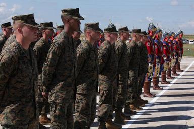 | Keywords: 120812-M-XK110-378 (7783066686).jpg U S Marines stand in formation next to the Mongolian Armed Forces band during the opening ceremony for Khaan Quest 2012 at the Mongolian Armed Forces Peace Support Center near Ulaanbaatar Mongolia Aug 12 2012 Khaan Quest is an annual multinational operational exercise co-sponsored by the Mongolian armed forces and U S Pacific Command that is executed by U S Army Pacific with support from the U S State Department It is designed to strengthen the capabilities of U S Mongolian and other nations' forces in international peace support operations worldwide DoD photo by Lance Cpl Matthew Manning U S Marine Corps/Released https //www flickr com/photos/39955793 N07/7783066686/ 120812-M-XK110-378 2012-08-12 11 34 https //www flickr com/people/39955793 N07 U S Department of Defense Current Photos PD-USGov U S Department of Defense Current Photos https //flickr com/photos/39955793 N07/7783066686 2016-09-03 10 17 51 United States Government Work Alaska National Guard Five Hills Training Area MN Khaan Quest 2012 Mongolian Armed Forces Republic of Korea Army Army of India Ulan Bator United States Department of Defense |