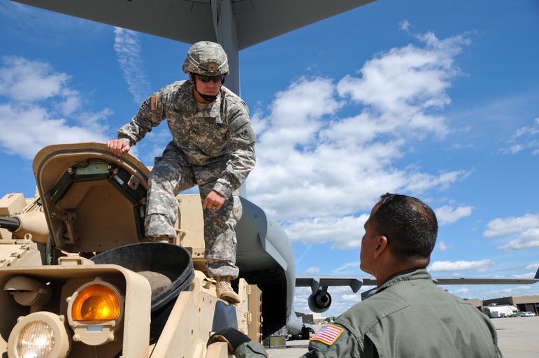 | Keywords: 120919-Z-GJ424-006 (8020255811).jpg A U S Soldier left with the 5th Squadron 15th Cavalry Regiment gets loading instructions from an Air Force loadmaster with the 137th Airlift Squadron New York Air National Guard before driving an M2 Bradley fighting vehicle aboard an Air Force C-17 Globemaster III aircraft with the 105th Airlift Wing for transport to Fort Benning Ga from Stewart Air National Guard Base in Newburgh N Y Sept 19 2012 DoD photo by Tech Sgt Michael O'Halloran U S Air Force/Released https //www flickr com/photos/39955793 N07/8020255811/ 120919-Z-GJ424-006 2012-09-19 00 00 https //www flickr com/people/39955793 N07 U S Department of Defense Current Photos PD-USGov U S Department of Defense Current Photos https //flickr com/photos/39955793 N07/8020255811 2016-09-03 10 12 02 United States Government Work Newburgh New York United States Department of Defense |